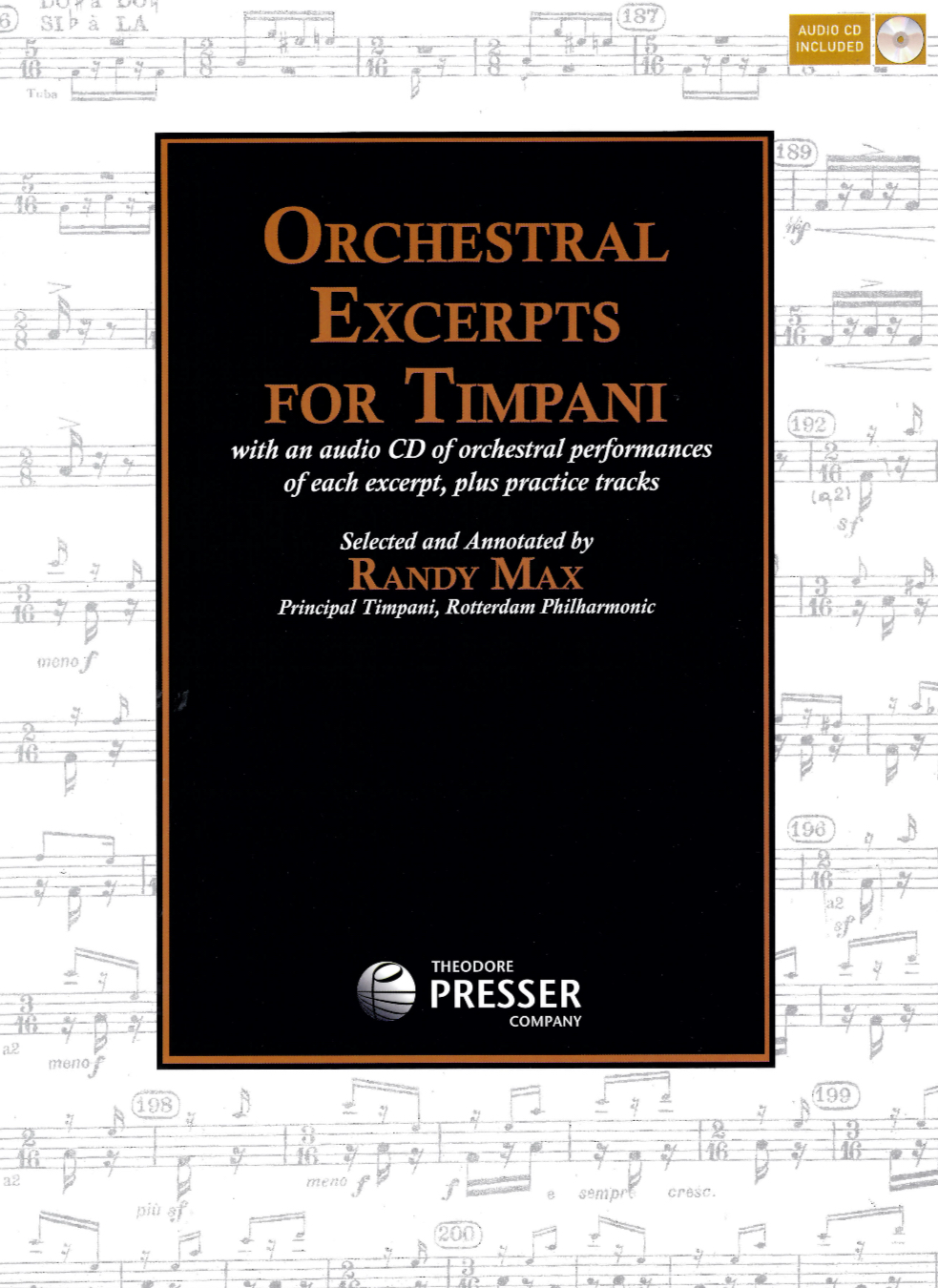 “I have heard the statement ‘too much knowledge is dangerous’; however when it comes to preparing for an audition, the more knowledge you have the more prepared you are. Randy Max has written a book that gives you not only the music but information about the variations of tempi one can expect for the excerpt, historical facts about the music, BIOs of the composers and suggestions for practicing, tuning and sticking for both American and German style timpani playing. All this and a CD that accompanies the book so the excerpts can be heard and practiced. Orchestral Excerpts for Timpani is a ‘must have’ book for the serious timpanist preparing for an audition. The 57 passages represent the most requested audition excerpts and are done in a well organized, informative and easy to read manner. Highly recommended.” John H. Beck, Professor Emeritus of Percussion Eastman School of Music Principal Timpani, Rochester Philharmonic (retired)